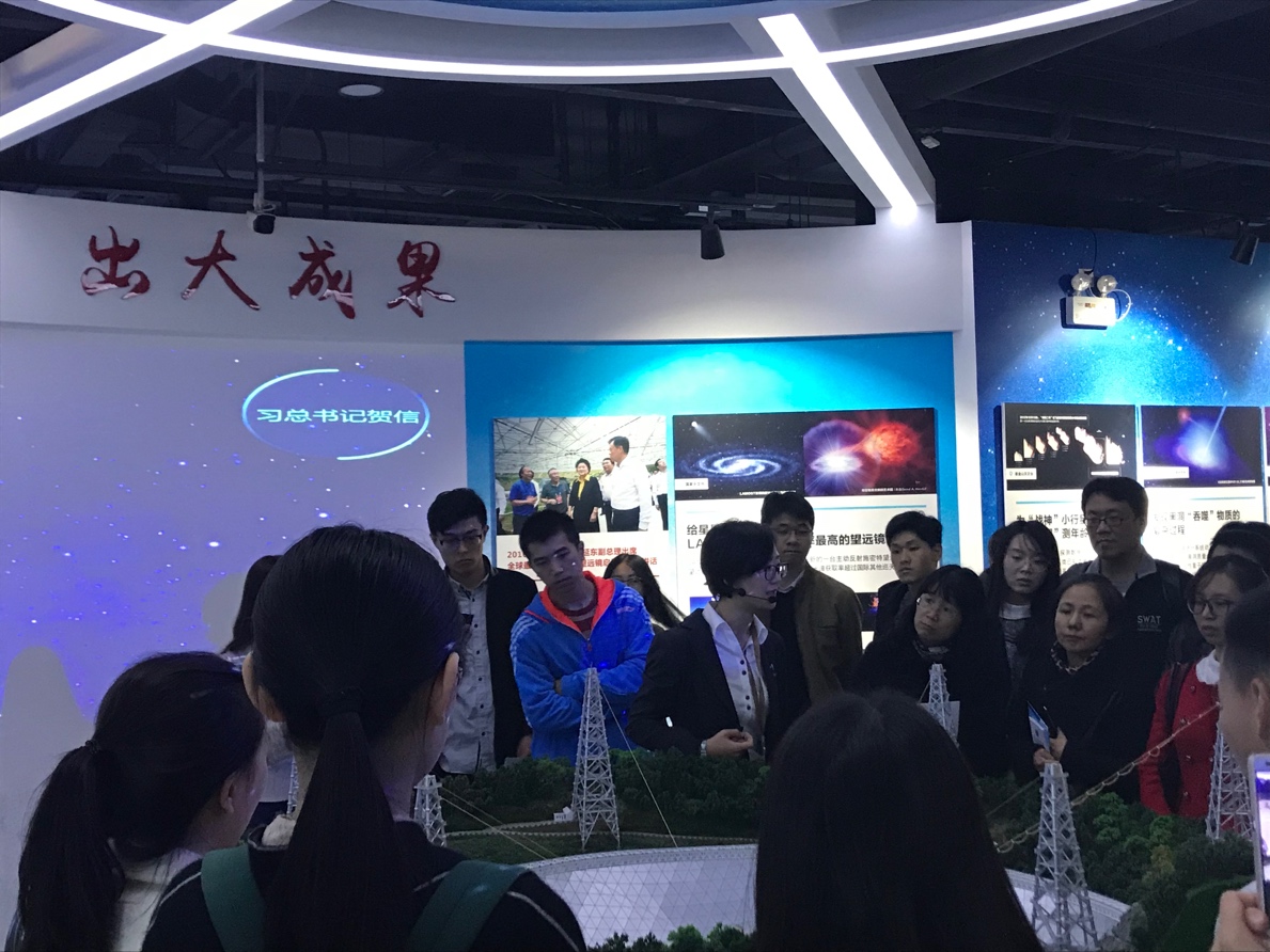 老师与同学们认真聆听讲解员的详细讲解,仔细观看煤炭清洁高效利用、先进核能ADANES系统、天宫、蛟龙、天眼、悟空、墨子等重大科技成果,从宇宙起源的基础物质和理论的研究,到服务生态文明建设的治理技术的应用,深入地了解我国五年来面向世界科技前沿、面向国家重大需求、面向国民经济主战场的突飞猛进、不断进步与超越的科技发展,对创新发展所取得的巨大成就感到惊艳,深受鼓舞。