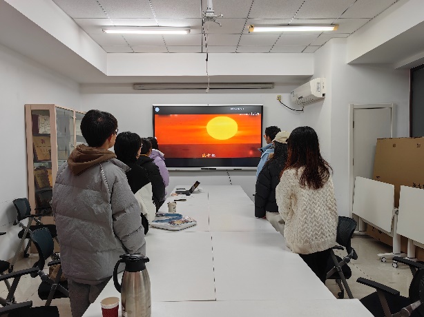 第二党小组组长张腾宇与小组党员与积极分子一道重温了毛主席在开国大典、抗美援朝等多个重要场合的讲话视频,带领同志们一起穿越历史,见证中国革命历史的重要时刻。大家一起学习青年时期的毛泽东同志自长沙求学到投身于革命事业的经历,研读《七律·到韶山》背后的革命精神,体会毛泽东同志高远的政治情怀、民族情怀、人民情怀。