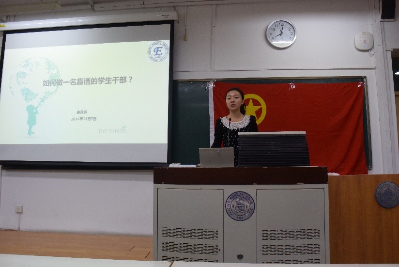 康老师接下来强调了活动的举办流程、要求及各步骤意义。最后将培训内容总结为一句话:“做好该做的事,担好该担的责任,完成好自己的角色”。此次培训在同学们的掌声中结束。