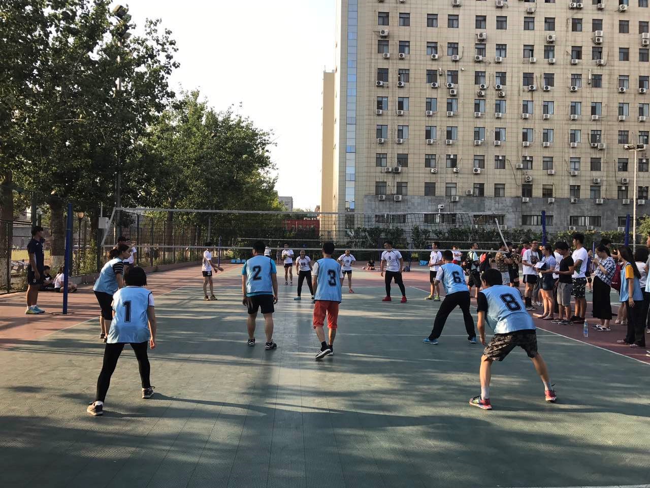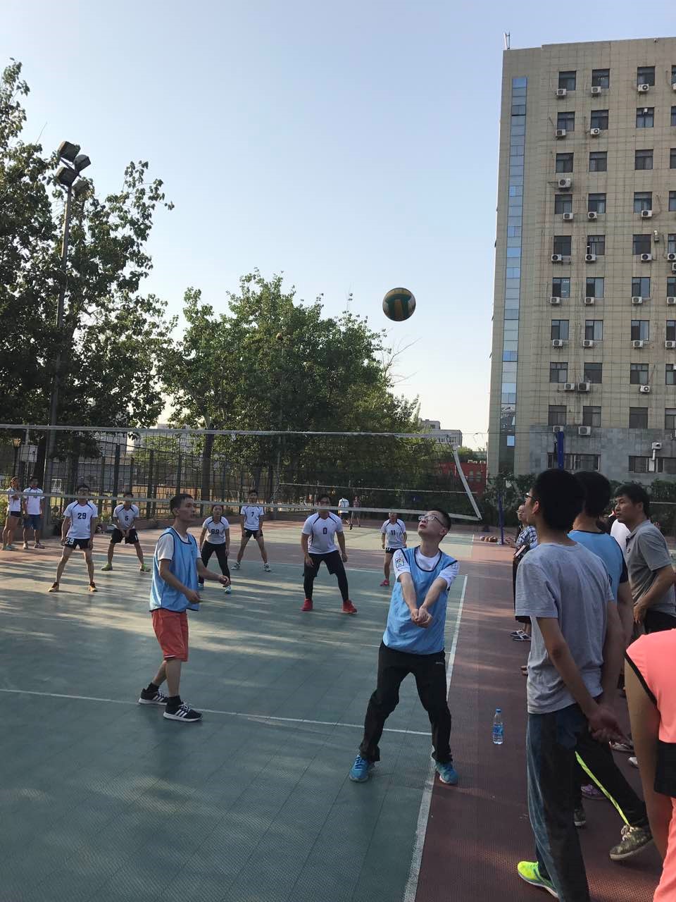 尽管环境排球队在第一场比赛中憾负艺传,但是我队队员毫不气馁,迎难而上,在接下来的比赛中力克信科,赢得比赛。