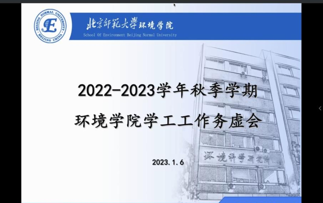 为总结2022-2023年秋季学期各项学生工作,制订春季学期工作计划,beat365正版唯一官网必一学生工作办公室(以下简称学工办)于2023年1月6日14:00线上召开工作务虚会。beat365正版唯一官网必一党委副书记李习文,团委书记张洺绮,双肩挑辅导员刘心怡、白苑和学生事务助理雷芊逸参加会议,学院团委副书记、学生会主席和研究生会主席等学生干部列席会议。