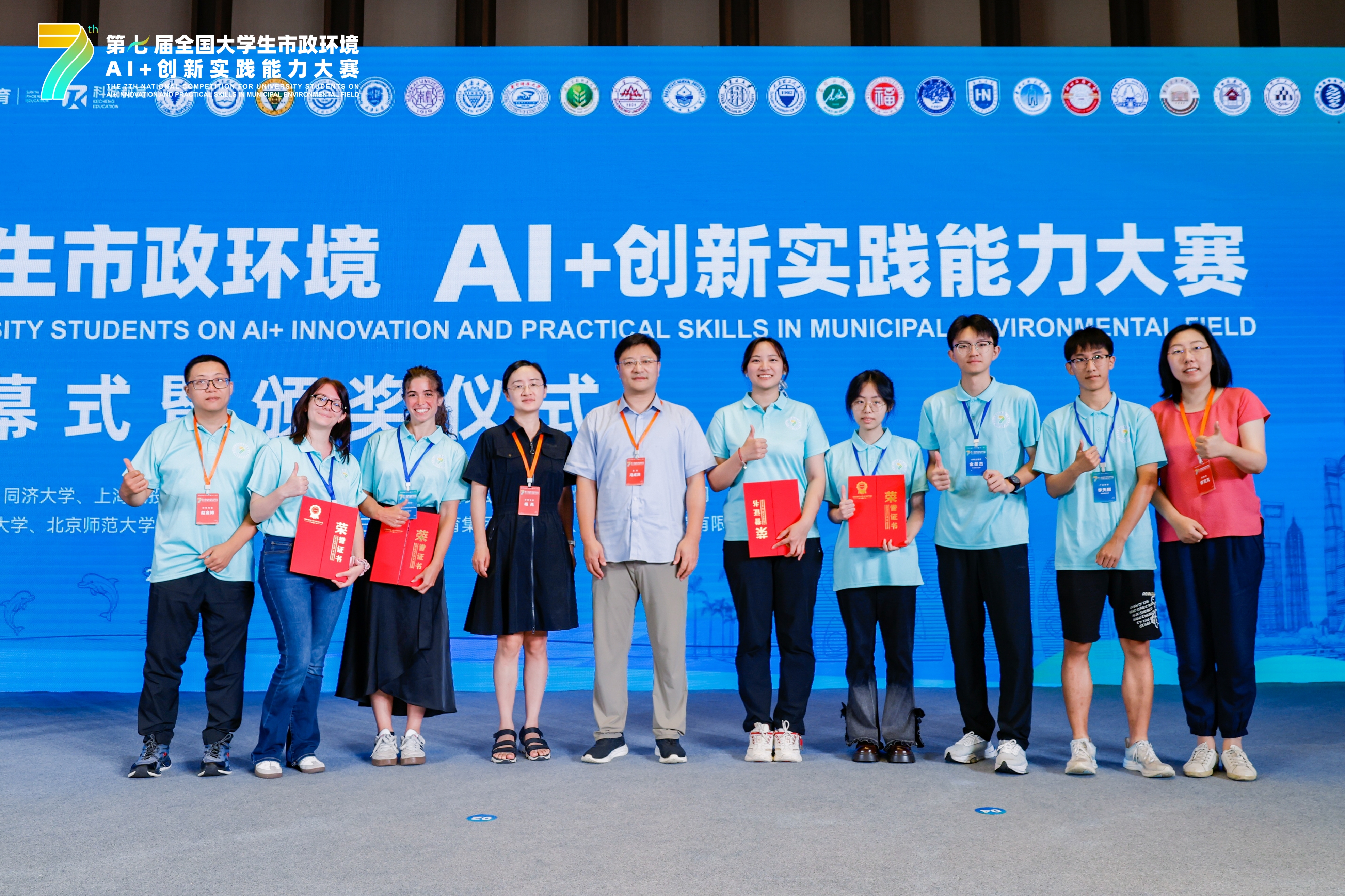 9月20日至21日,第7届全国大学生市政环境类AI+创新实践能力大赛总决赛在三亚圆满落幕,beat365正版唯一官网必一代表队再创佳绩。beat365官网留学生Maria Stella Burgio、Maria Vittoria Guida携手摘得国际赛道金奖;曹靓星、金圣杰与化学学院李佳芸联合组建的“环抱未来队”荣获本科赛道团体一等奖;曹靓星、李天麒、金圣杰、宋妍妍与人工智能学院吕佳忆和化学学院李佳芸六位同学组成的“水...