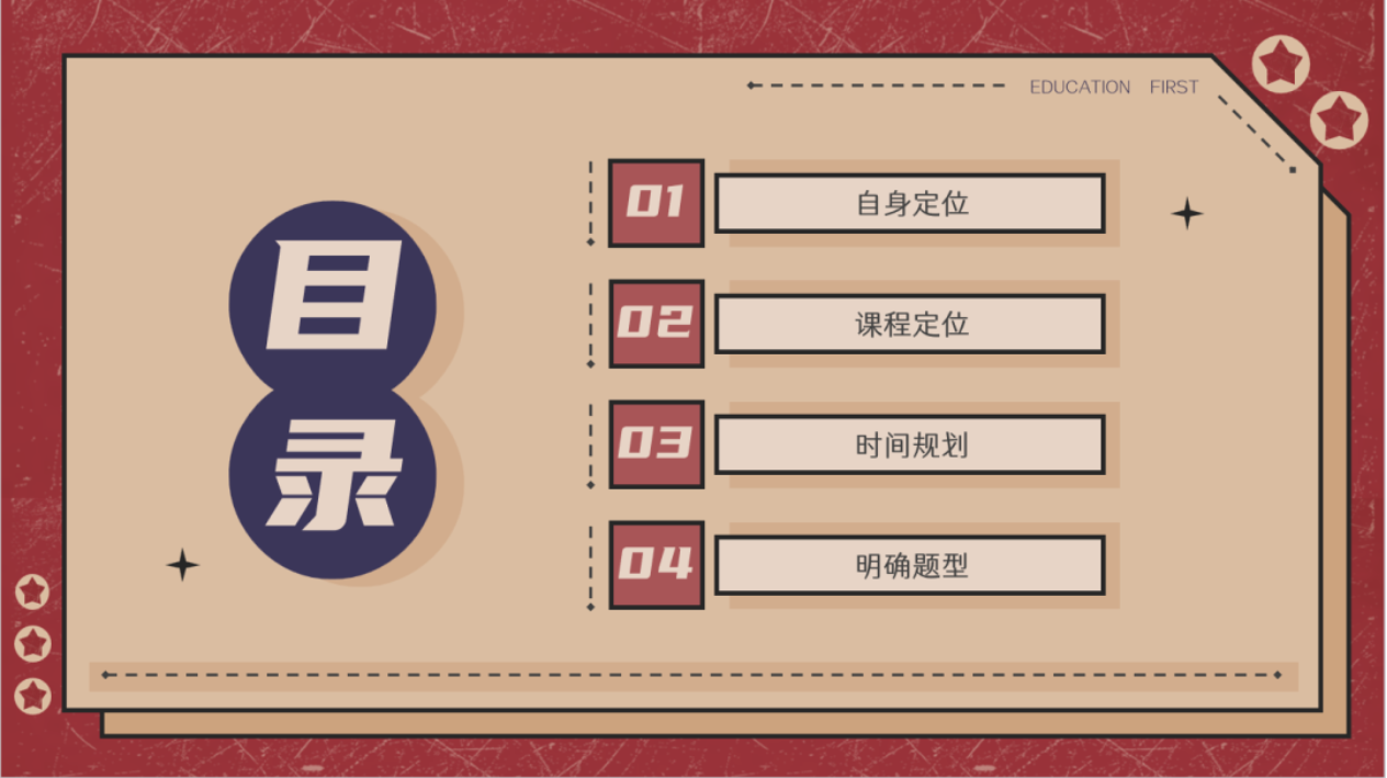 彭欣园同学从自身定位、课程定位、时间规划、明确题型四个方面分享了一些备考准备。