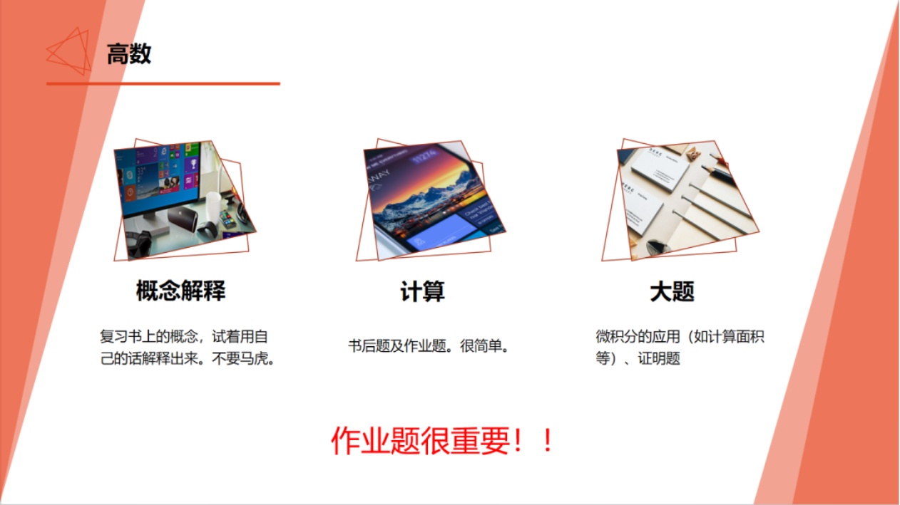 环境科学概论可能会考名词解释、填空和计算等题型;高数的书后题及作业题很重要;史纲要认真复习老师画的重点;信息技术多去虚拟桌面做题等等。
