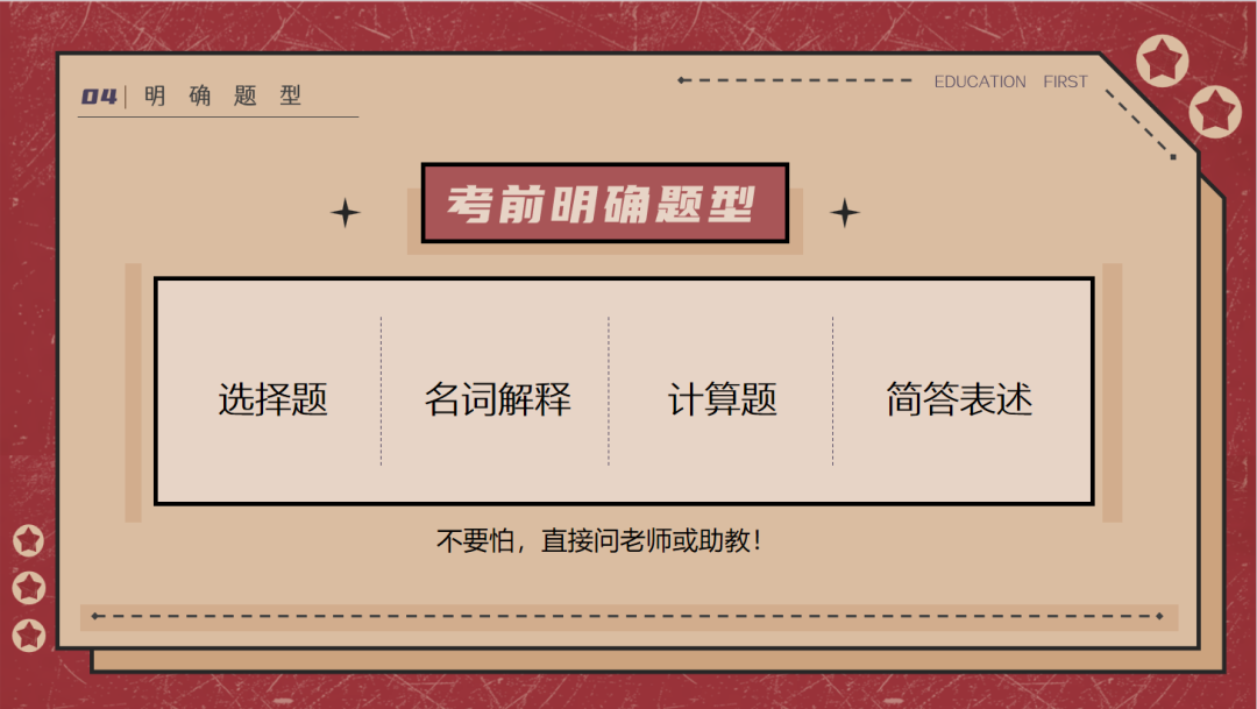 在明确了复习策略之后,同学们可以根据具体的考试时间和不同科目的重要性,来整体规划自己的复习时间。针对名词解释、简答表述这类题,可以划出主干、明晰逻辑之后根据自己的理解表达出来;而选择题和计算题,则需要熟练掌握考点,才能正确作答。