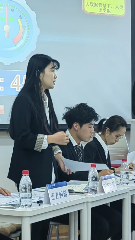 主席一声令下,首先进入立论质询环节,随着正方一辩阐述本方观点,辩论赛正式开始交锋。我方从大数据突破生产力的限制以及提供更多选择入手,强调大数据提升了全人类的自由,反方则将观点着眼在个体,强调信息茧房带来的个体的受限。双方围绕着该话题进行着激烈的攻防,你来我往,针锋相对,彰显了出色的辩论技巧和扎实的理论知识。随着辩论交锋的不断深入,辩手们的发言愈发激烈,他们用逻辑和事实相互攻击,试图从不同角度攻破对方的论点防线。