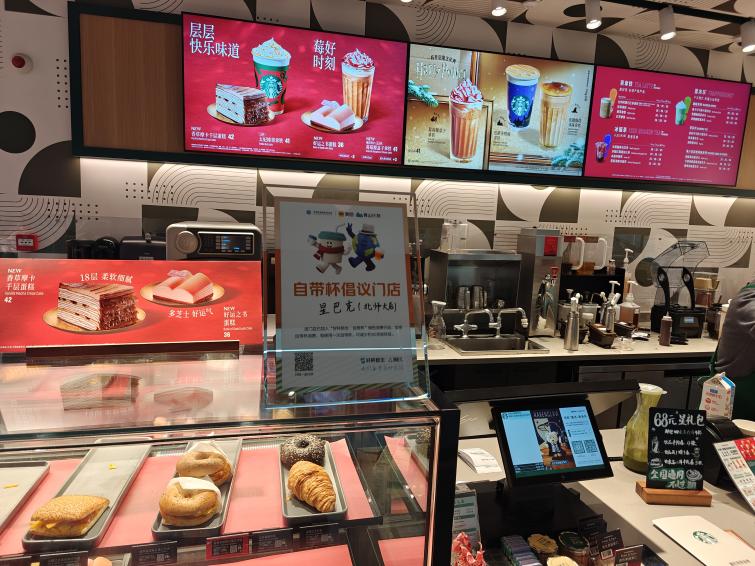 线下层面,活动联动星巴克(北师大店)、霸王茶姬(枫蓝国际店)等多家支持 “自带杯” 的商家,推出消费立减优惠。同学们携自带杯到店消费,既能享受实惠,又能参与打卡抽奖,在日常消费场景中践行环保。