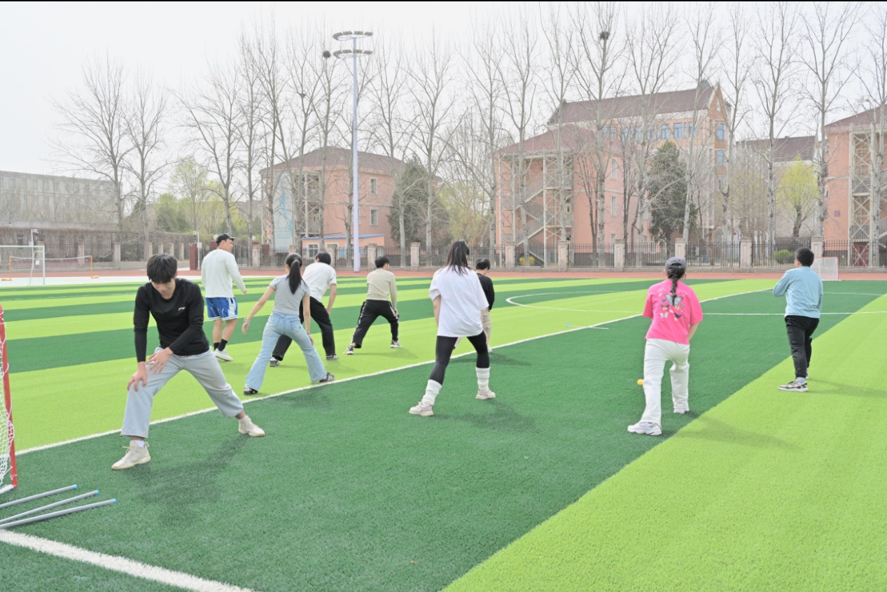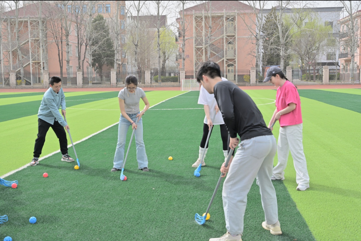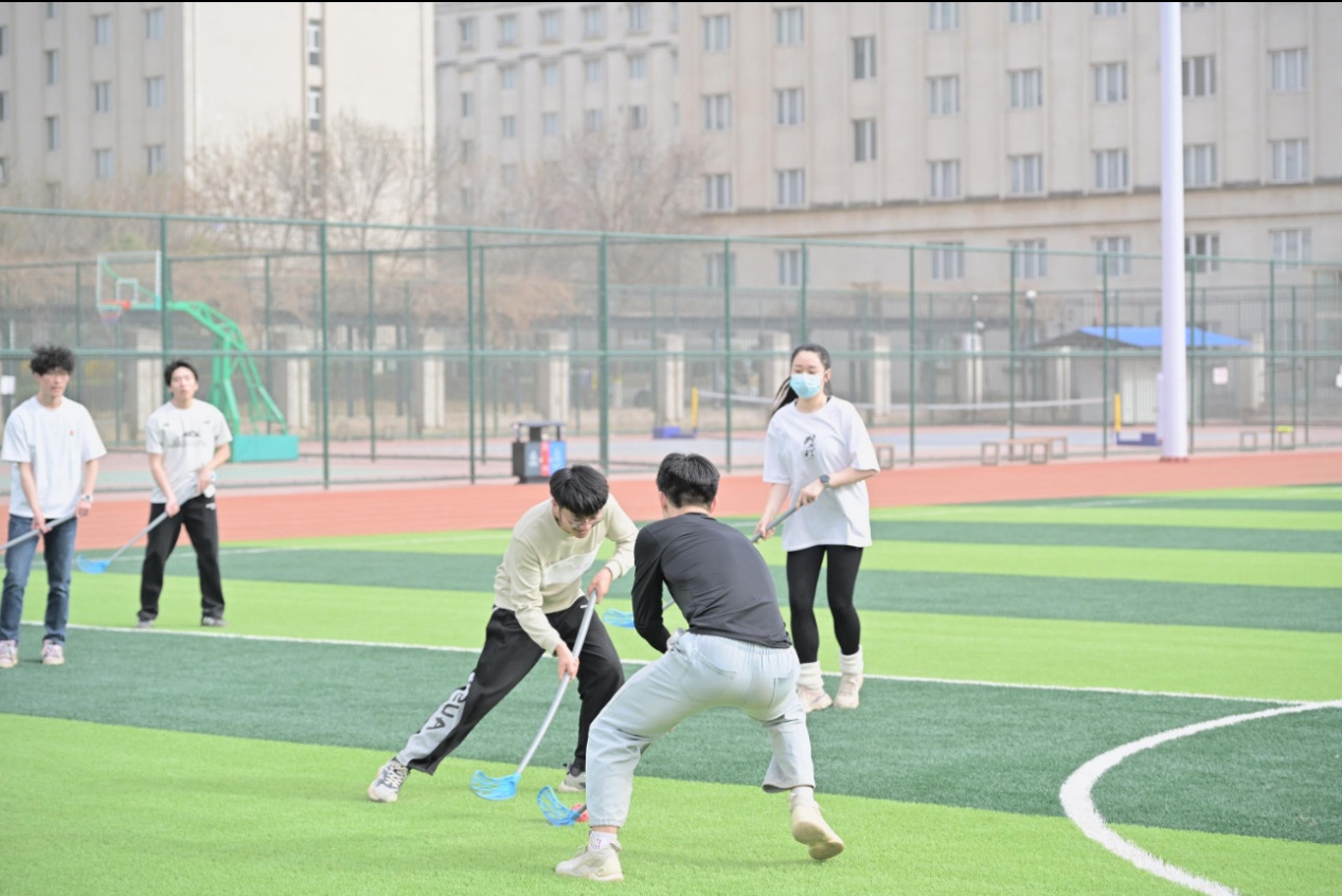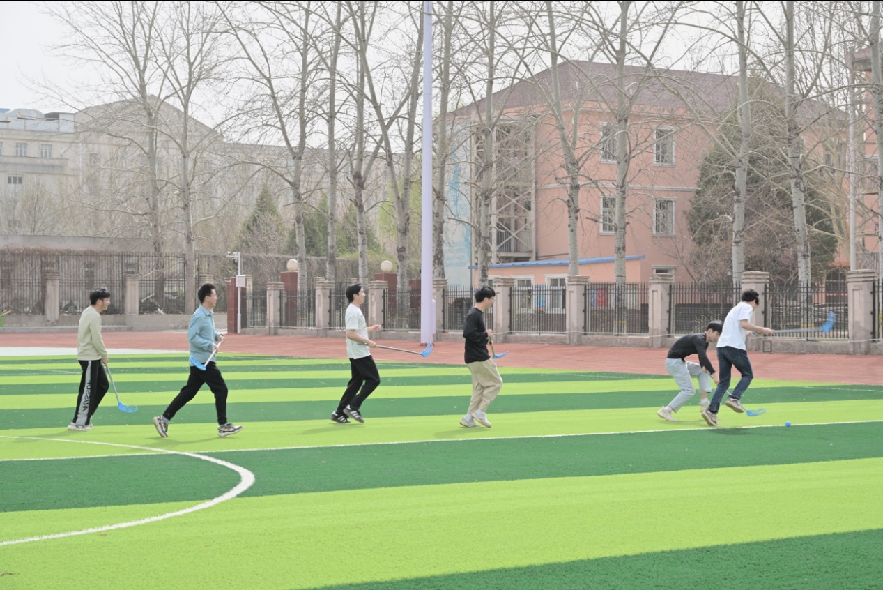 随后,教练详细讲解了旱地冰球的运动规则,现场示范握杆姿势、传接球技巧及攻防策略,学员们认真观摩后分组进行适应性训练。在反复练习中,同学们逐渐掌握动作要领。经过充分准备,参赛队伍展开友谊对抗赛。