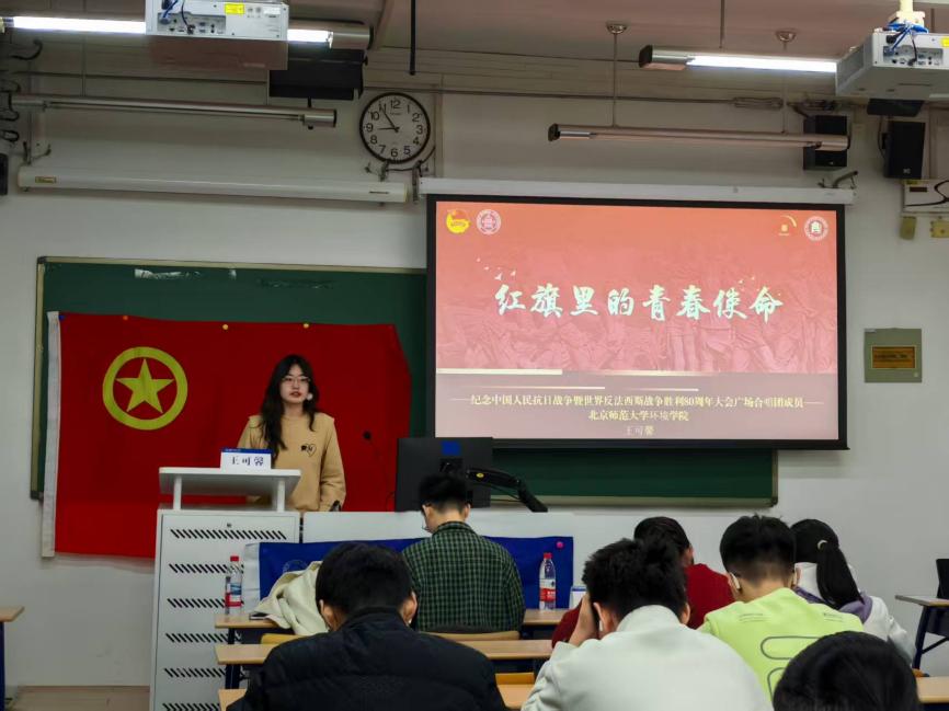 张启月以 “铭记抗战历史,凝聚奋进力量 —— 让伟大抗战精神代代相传” 为主题,讲述杨靖宇、赵一曼等抗战英雄事迹,结合 “一二・九” 学生运动中北师大青年的救亡足迹,诠释 “铭记历史、缅怀先烈、珍爱和平、开创未来” 的时代内涵。林维越以《可爱的中国》精神内核为线索,分享朗诵作品时对方志敏烈士信仰的感悟、合唱《保卫黄河》时对抗战精神的理解,以及作为观礼台志愿者参与抗战胜利 80 周年大会的切身感受。王可馨以 “红旗” 为逻辑线索,通过徂徕山抗日武装起义队旗、华八井油田精神旗帜等案例,勾勒红色基因传承画卷,阐释当代青年的责任与担当。