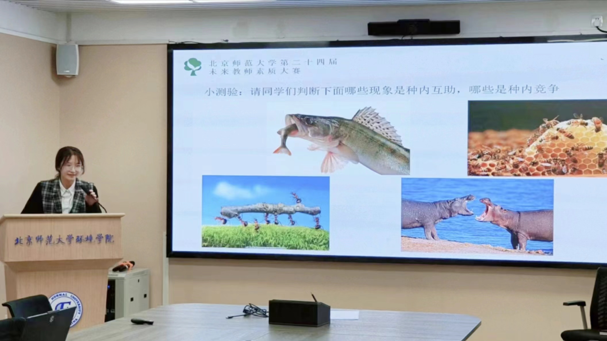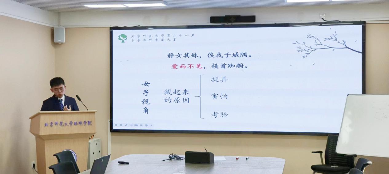 在模拟课堂中,选手在讲述知识的同时也展现出了各有千秋的个人特色,有的课堂如潺潺流水流过群山座座,安详又悠扬,有的课堂如昨夜天光乍破远山轮廓,慷慨且激昂。各位选手也展现了自身优秀的教师品质,如清晰的言语表达,流畅的逻辑推演,细致的知识梳理。在这些生动有趣的课堂上,恍惚间有那么一瞬,我们还是懵懂的中学生。