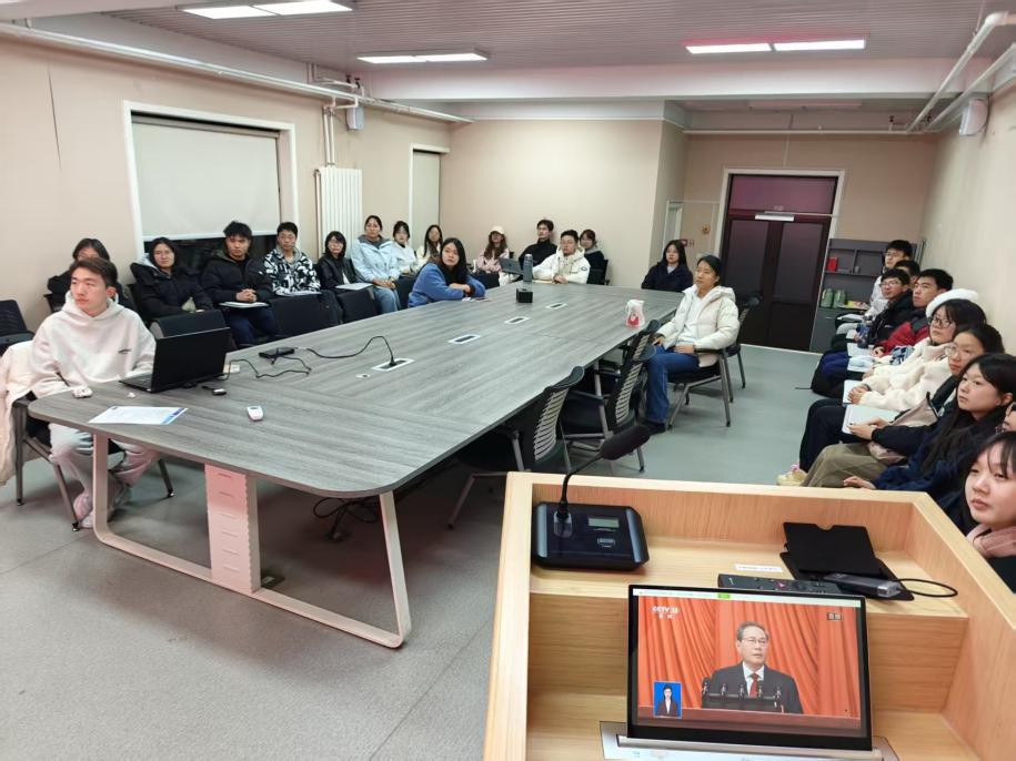 春潮启新程,青年担使命。为深入学习贯彻 2026 年全国两会精神,引领学院青年学子将个人成长与国家发展、生态环保事业紧密结合,2026年3月5日晚,beat365正版唯一官网必一团委、学生会、研究生会组织全体成员观看两会回放,认真学习2025年政府工作报告、凝聚奋进力量。