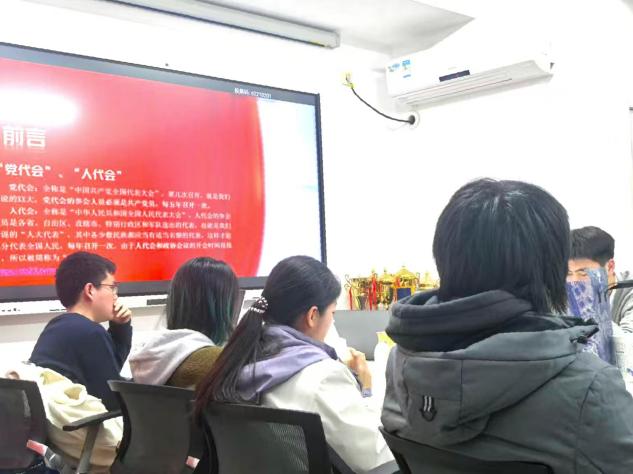 本次主题团日活动主要围绕“两会”中所提到的政策方向、经济指标、社会文化、国际影响四个方面。政策稳中求进、以进促稳,财政政策灵活给力,环保政策鼓励转型,国防预算稳步提升;经济指标务实合理,兼顾结构调整,保障改善民生,衔接未来愿景;社会文化明体达用、体用贯通,坚持兼收并蓄,促进传统文化创新发展,治理网络文化规范发展;国际交流要稳外贸、强信心,主动应对全球化变局,赋能数字经济,深化区域协作,引领绿色转型。