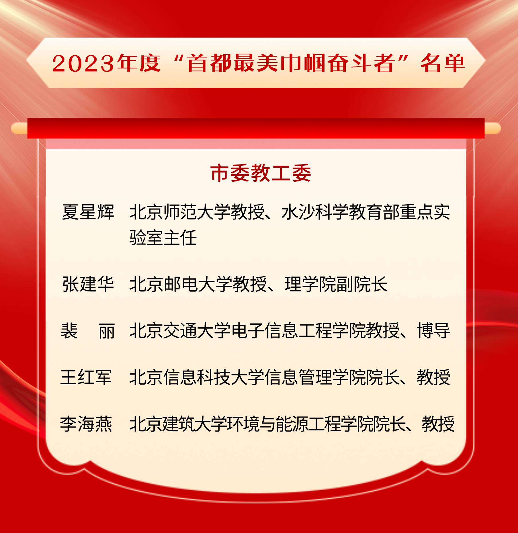 近日,2023年度“首都最美巾帼奋斗者”榜单揭晓。beat365正版唯一官网必一教授夏星辉荣获“首都最美巾帼奋斗者”称号。她用奋斗创造辉煌、以拼搏担当责任,展现北师大女教职工的精神面貌和风采。