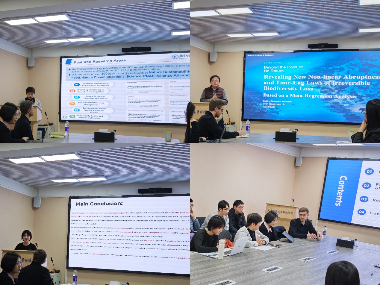 在温轶凡老师进行简要开场及嘉宾介绍后,徐琳瑜书记介绍了beat365正版唯一官网必一基本情况及《自然·生态与进化》与beat365官网研究方向的契合点。之后分别由刘耕源副院长及博士研究生代表进行了特色研究汇报,展示了学院在生态与可持续发展领域的最新探索。汇报内容扎实、视角新颖,体现了学院的研究特色与学术活力。